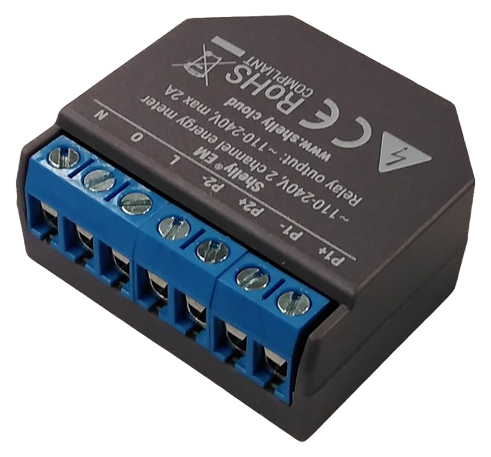 Shelly EM + 50A – WiFi 2.4 GHz IEEE802.11 b/g/n – Medidor de consumo – Soporta 110-230 V – Ideal para viviendas – Compatible con Alexa y Google