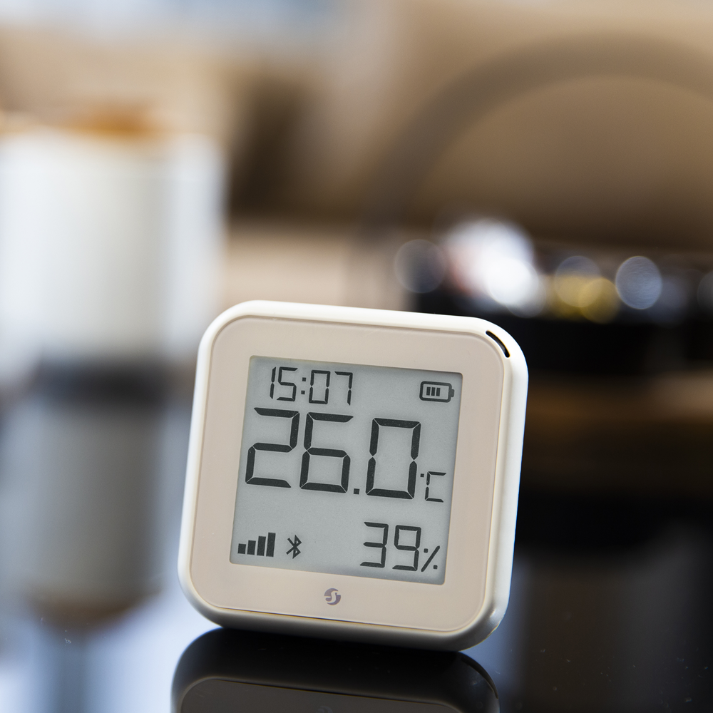 Shelly H&T Gen 3 Blanco Mate – WiFi 2.4 GHz IEEE802.11 b/g/n / Bluetooth – Sensor H&T – Pantalla de bajo consumo – Soporta 5V / 4 Pilas AA – Compatible con Alexa y Google