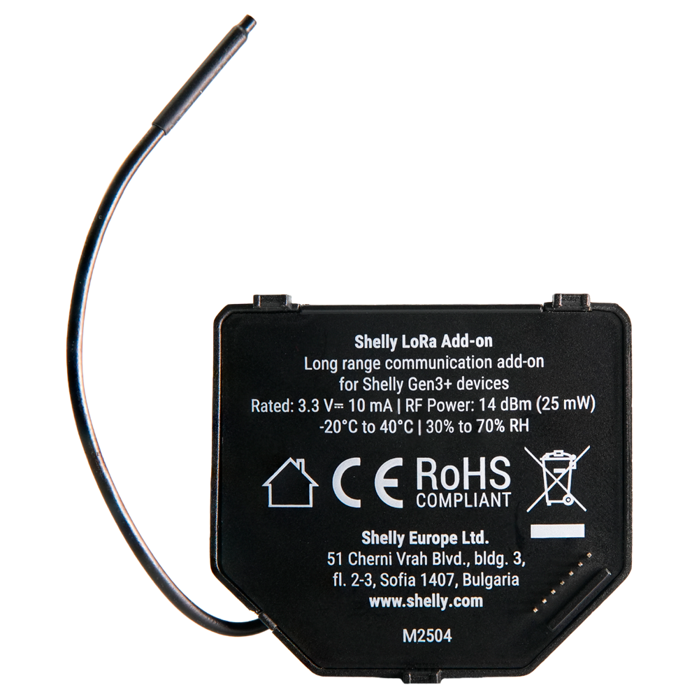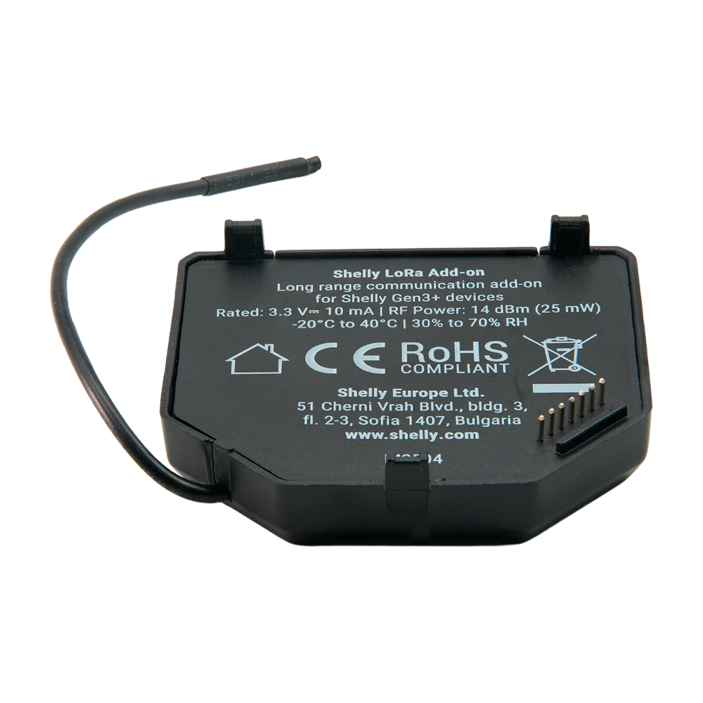 Shelly LoRa Add-on (Pack 2) – Comunicación mediante LoRa – Compatibilidad con Shelly Gen3 & Gen4 – Largo alcance hasta 5Km (Usando antena Ext) – Color Negro