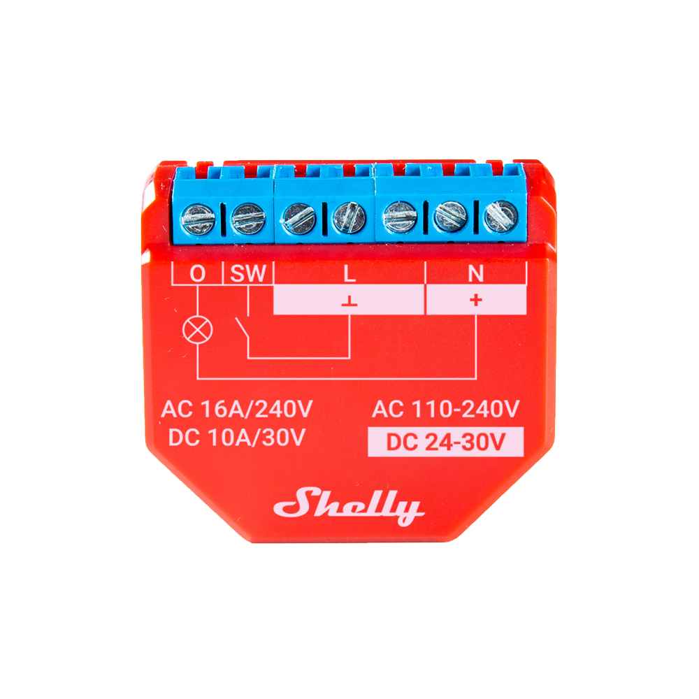 Shelly Plus 1PM – WiFi 2.4 GHz IEEE802.11 b/g/n / Bluetooth – Interruptor inteligente – Soporta 110-240 V / 24V – Medidor de consumo – Compatible con Alexa y Google