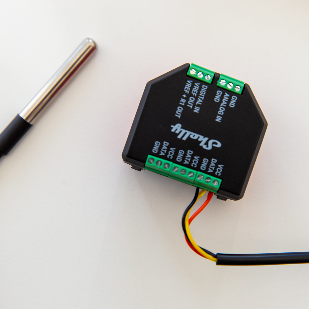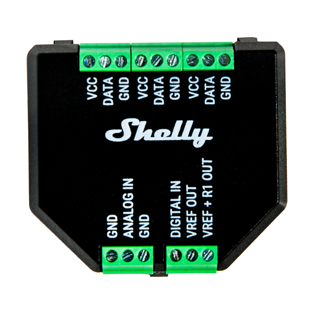 Shelly Plus AddOn – WiFi 2.4 GHz IEEE802.11 b/g/n / Bluetooth – Interfaz de sensor aislada – Soporta 3,3 V (del dispositivo Shelly plus) – Entrada analógica y digital – Compatible con Alexa y Google
