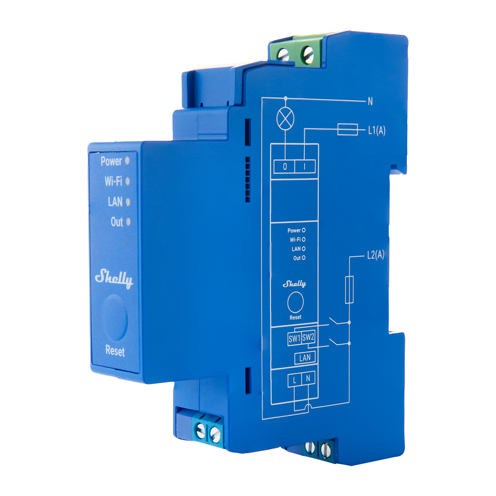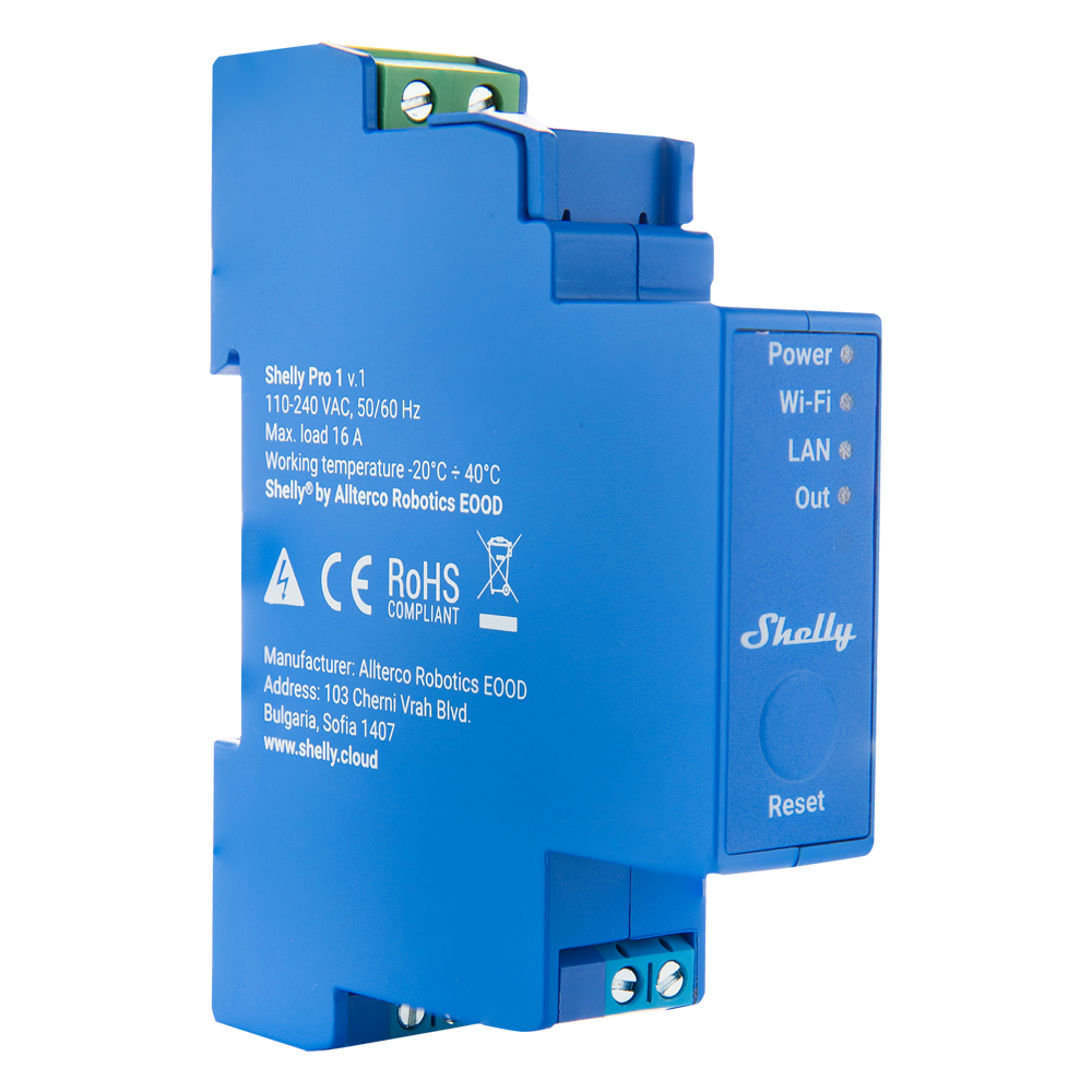 Shelly Pro 1 – WiFi 2.4 GHz IEEE802.11 b/g/n / Bluetooth – Interruptor inteligente carril DIN – Soporta 110-240 V – Apto para domótica de viviendas – Compatible con Alexa y Google