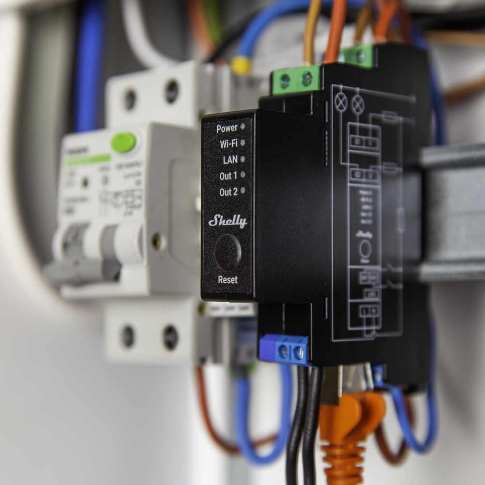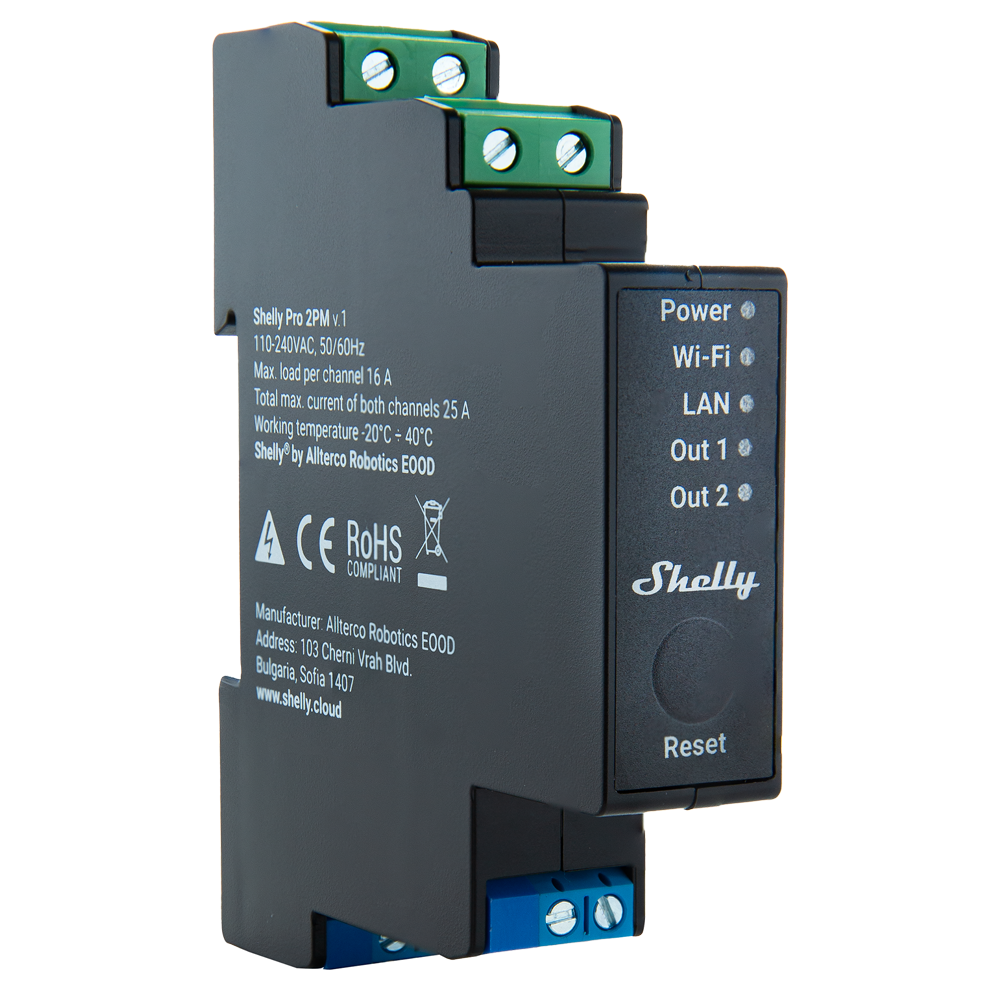 Shelly Pro 2PM – WiFi 2.4 GHz IEEE802.11 b/g/n / Bluetooth – Interruptor inteligente carril DIN – Soporta 110-240 V – Medidor de potencia – Compatible con Alexa y Google