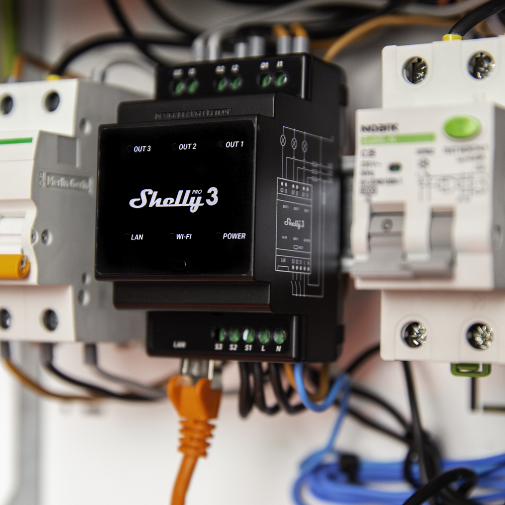 Shelly Pro 3 – WiFi 2.4 GHz IEEE802.11 b/g/n / Bluetooth – Interruptor inteligente carril DIN – Soporta 110-240 V – Apto para domótica de viviendas – Compatible con Alexa y Google