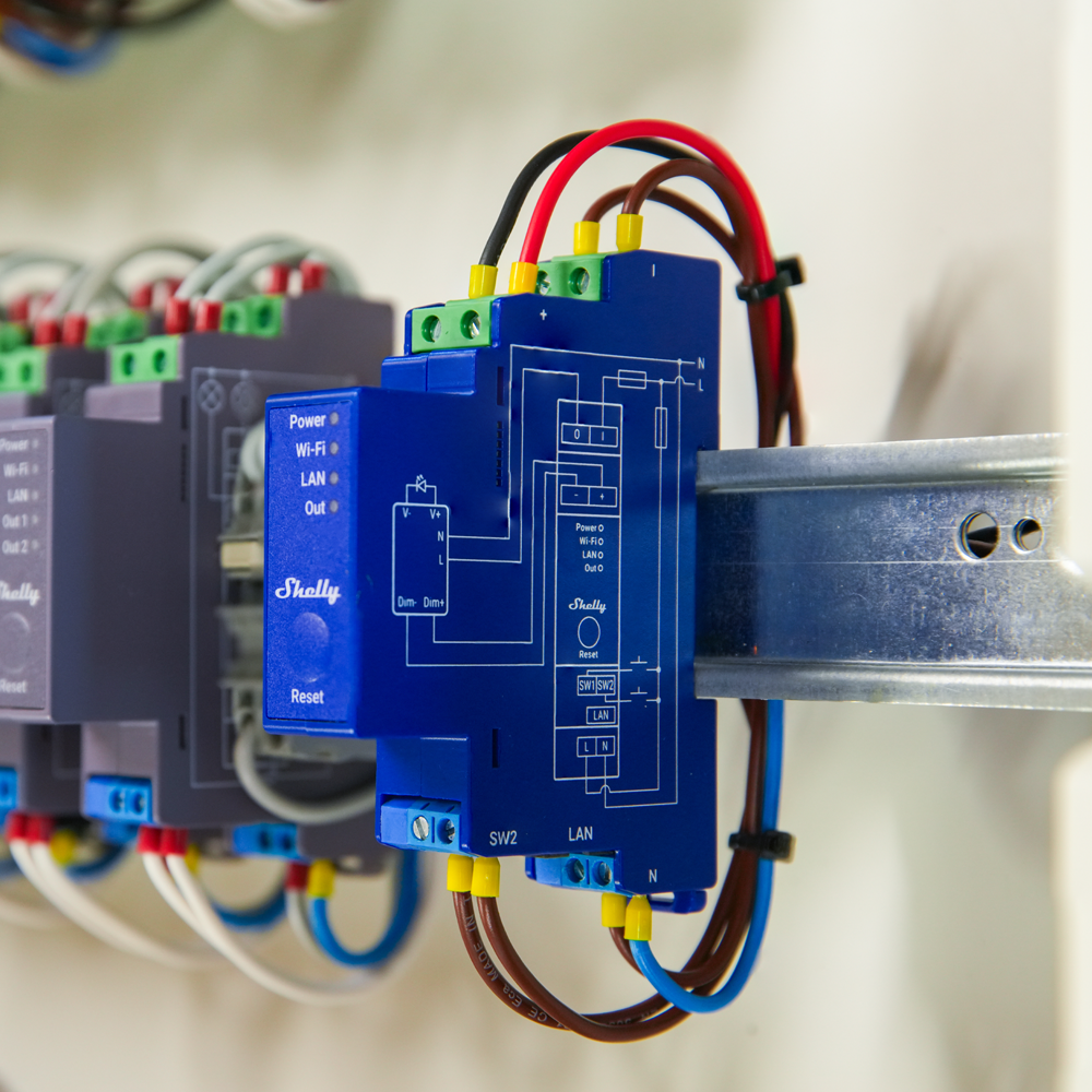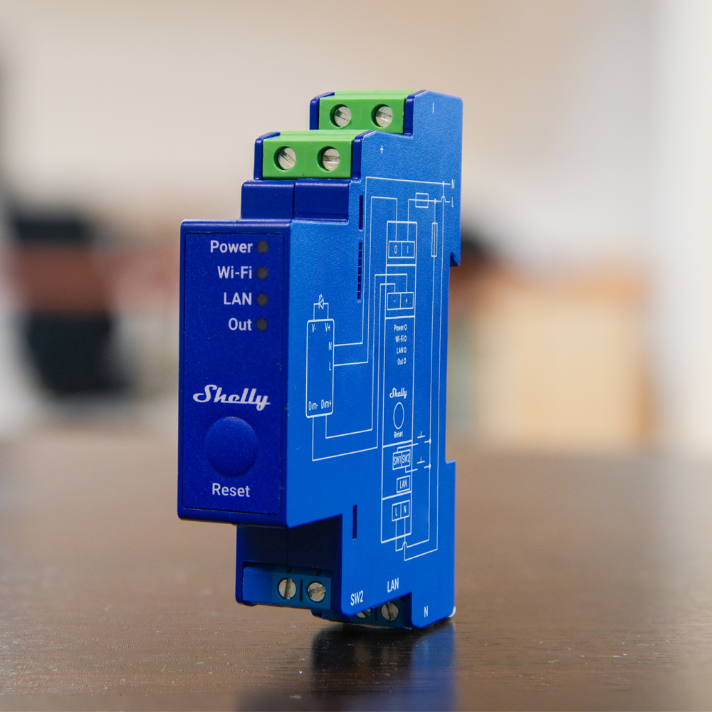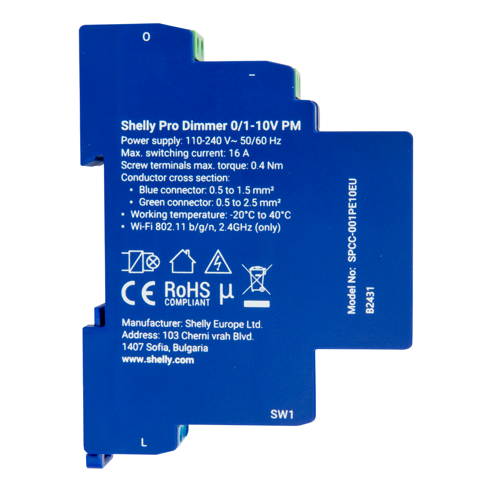 Shelly Pro Dimmer 0/1 – 10V PM – WiFi 2.4 GHz IEEE802.11 b/g/n / Bluetooth – Atenuador inteligente carril DIN – Soporta 110-240 V – Medidor de potencia – Compatible con Alexa y Google