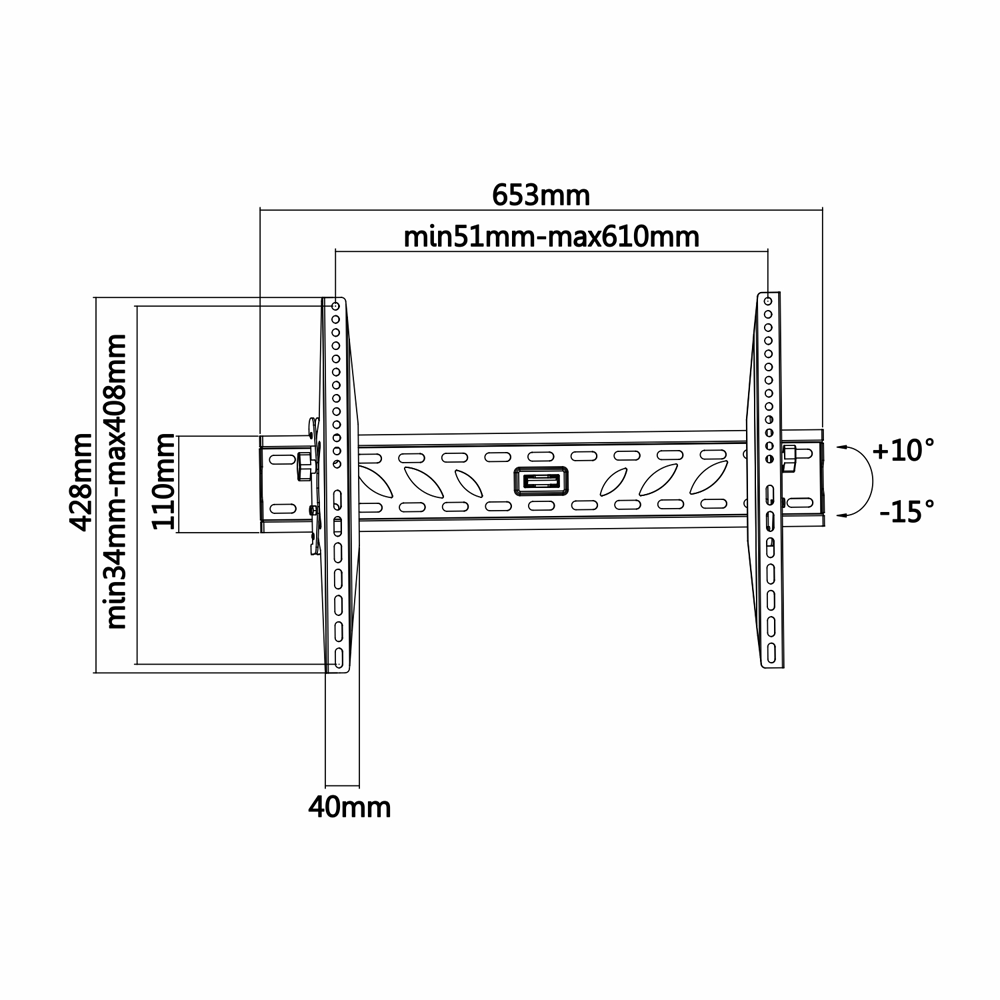 Soporte con inclinación – Peso soportado 50Kg – VESA 600x400mm – Distancia a la pared 74mm – Inclinación -15º / +10º
