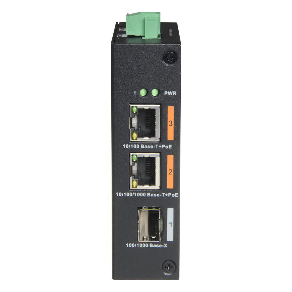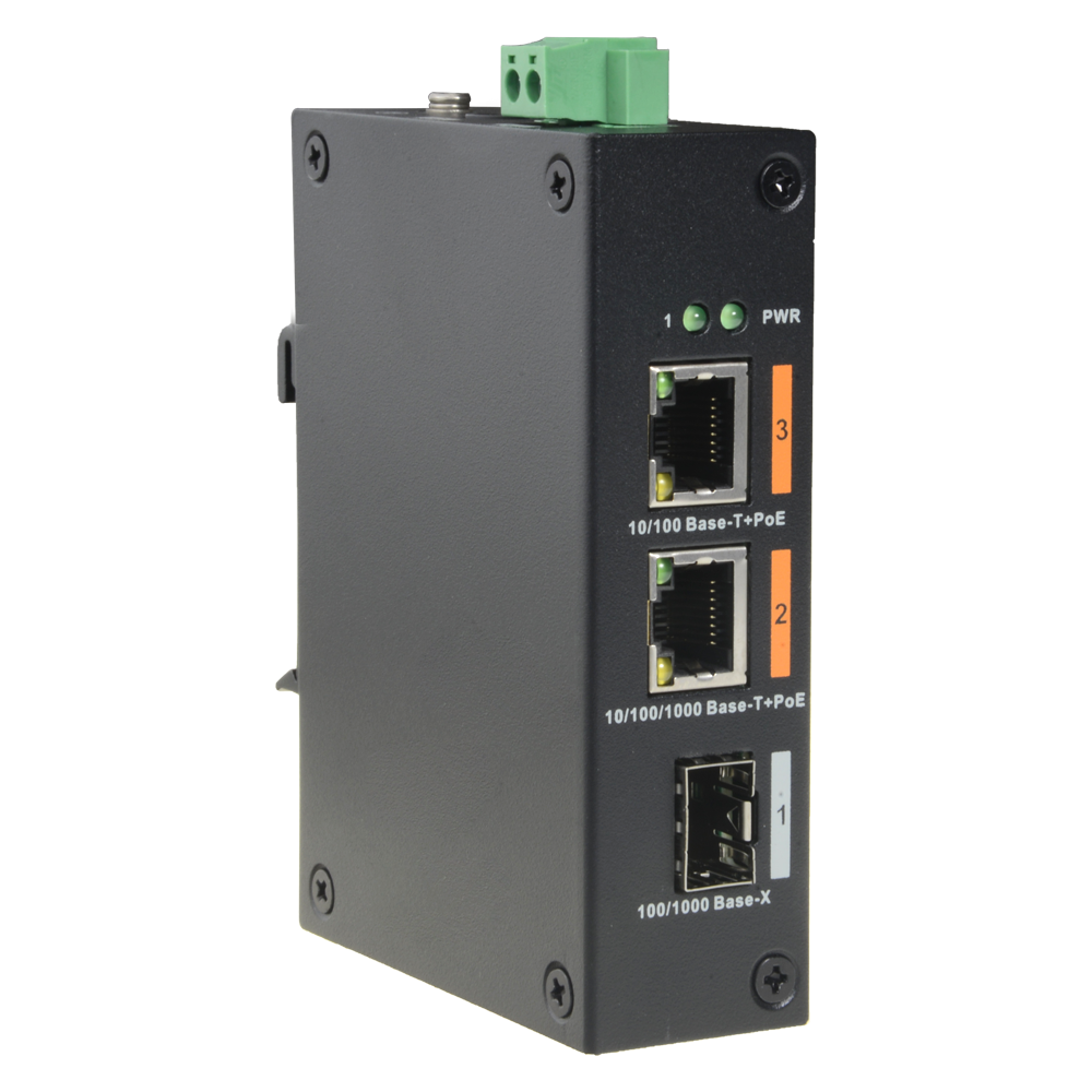 Switch HiPoE X-Security – 2 puertos PoE + 1 puerto Uplink (SFP) – Velocidad 10/100/1000 Mbps – Consumo máximo 60W – 2 Puertos HiPoE – Instalación en Carril DIN