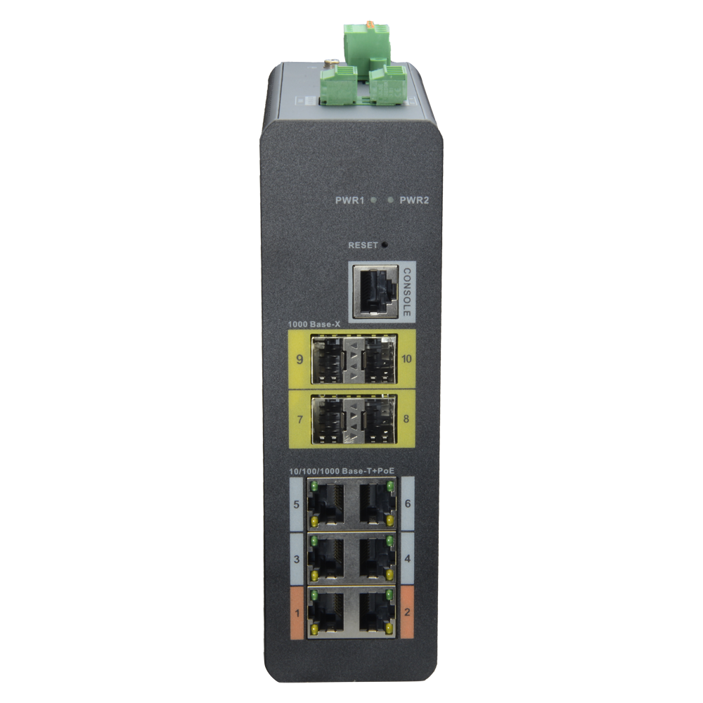Switch HiPoE X-Security – 6 puertos PoE (RJ45) + 4 puerto Uplink (SFP) – Velocidad 10/100/1000 Mbps – 2 Puertos Hi-PoE / Consumo máximo 120W – VLAN/STP/RSTP/MSTP/ACL/QoS/802.1X – LACP/Static LAG/DHCP Snoop/DHCP Server