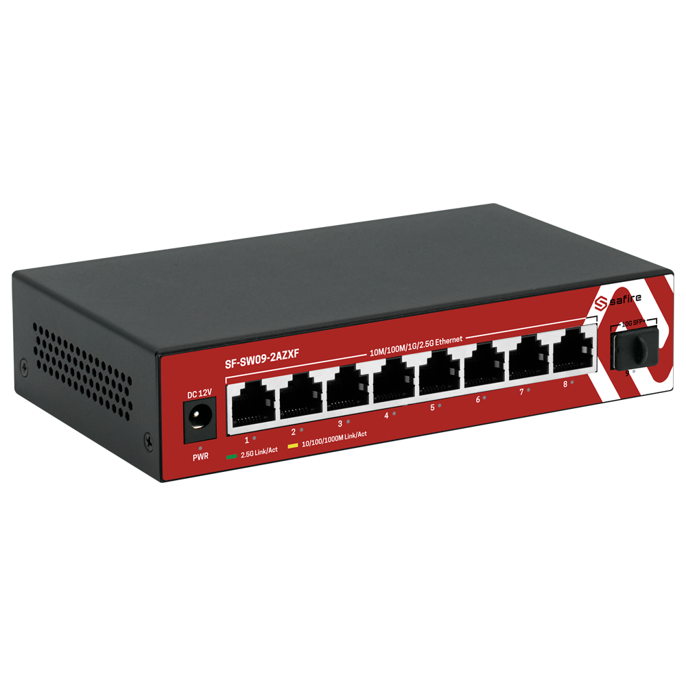 El SF-SW09-2AZXF , con 8 puertos RJ45 de 2.5 Gbps y 1 puerto SFP+ de 10 Gbps, se adapta a escenarios donde se requiere alta velocidad y estabilidad en la transmisión de datos. Sus casos de uso incluyen la conexión de cámaras IP 4K en sistemas de videovigilancia, la expansión de redes empresariales con gran cantidad de usuarios, la interconexión de servidores y dispositivos de almacenamiento en centros de datos pequeños, y el soporte para puntos de acceso WiFi 6/6E que demandan mayor ancho de banda. Gracias a su capacidad de conmutación de 60 Gbps, su baja latencia y su protección contra sobretensiones y descargas electrostáticas, es una solución confiable para oficinas modernas, instituciones educativas, hospitales y entornos inteligentes donde el tráfico de red es intensivo y se necesita garantizar un rendimiento estable y continuo.