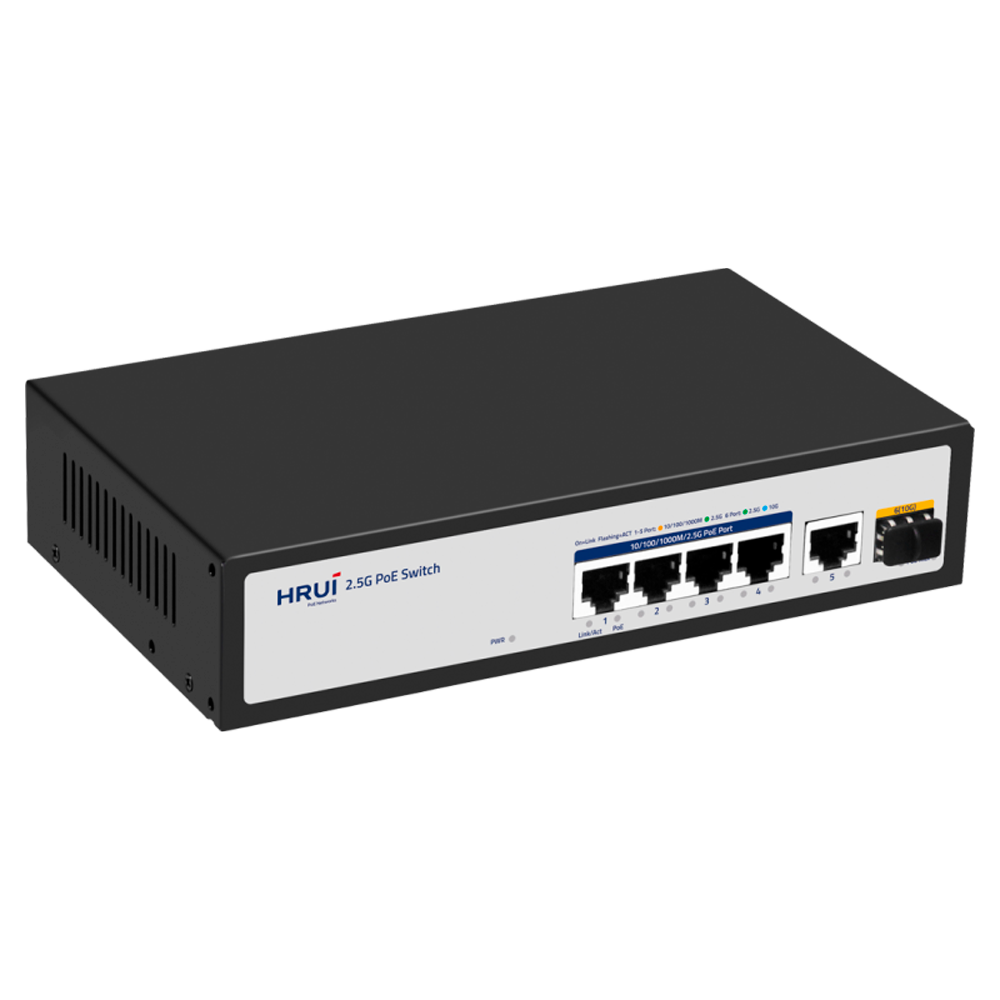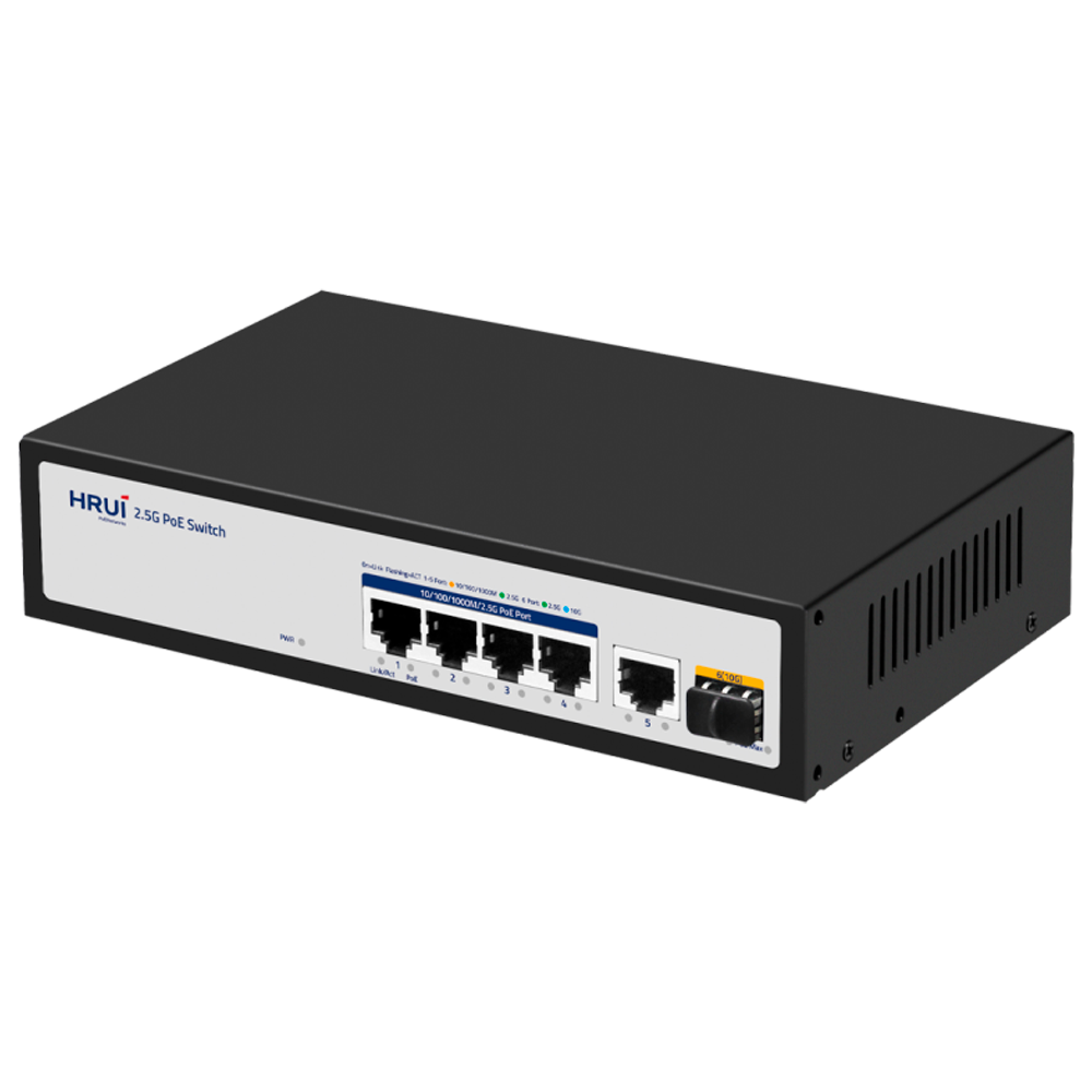 Switch PoE Multigagibit 2,5Gbps – 4 PoE + 1 Uplink Rj45 1/2,5G+ 1 Uplink SFP+ 10G – Velocidad de puertos 2,5/1Gbps – 4 Puertos PoE+ 30W – PoE Watchdog – Hasta 65W Potencia PoE total
