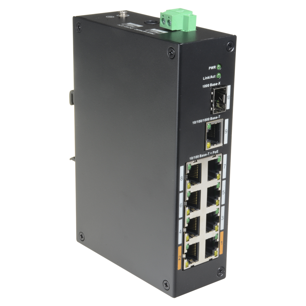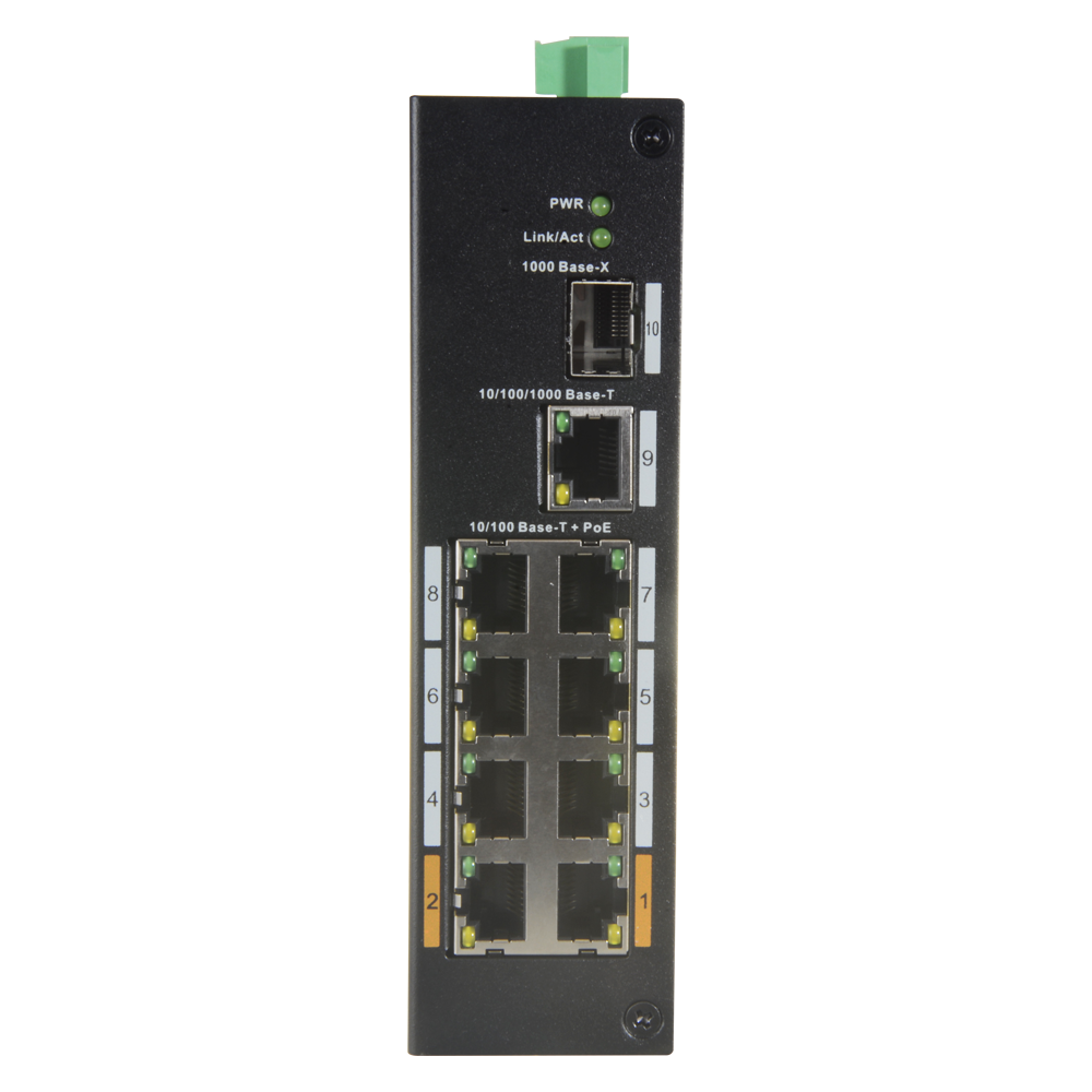 Switch PoE X-Security – 8 puertos PoE + 1 Uplink RJ45 – Velocidad 10/100 Mbps – Potencia 30 W por puerto – Potencia máxima total 96 W – Norma IEEE802.3at (PoE) / af (PoE+)