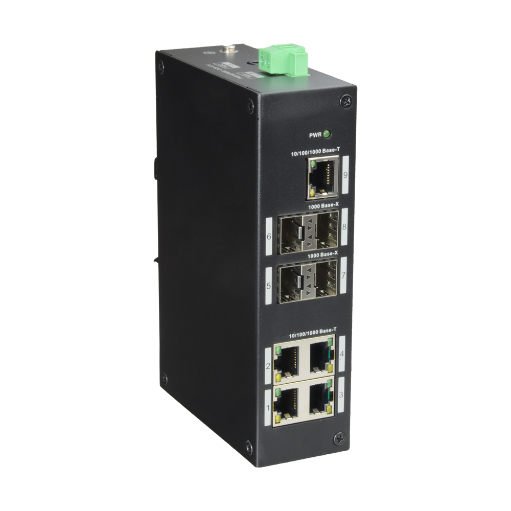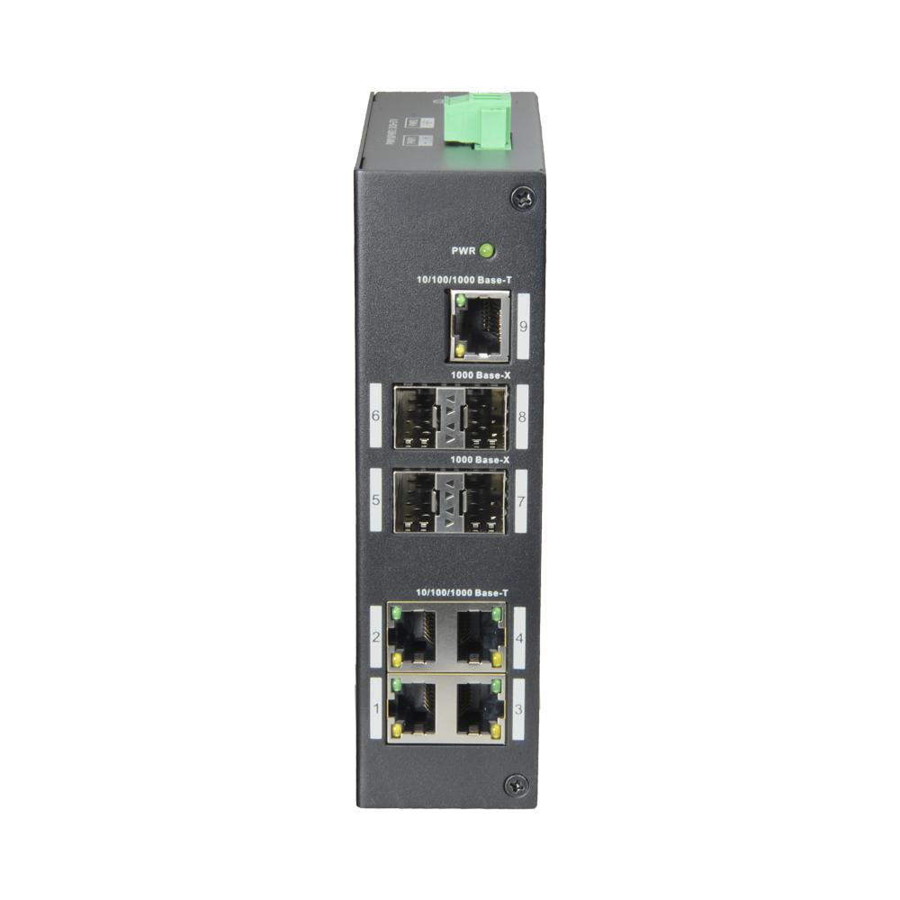 Switch X-Security – 5 Puertos RJ-45 – 4 Puertos SFP Gigabit – Velocidad 10/100/1000 Mbps – Soporta doble alimentación – Montaje en carril DIN