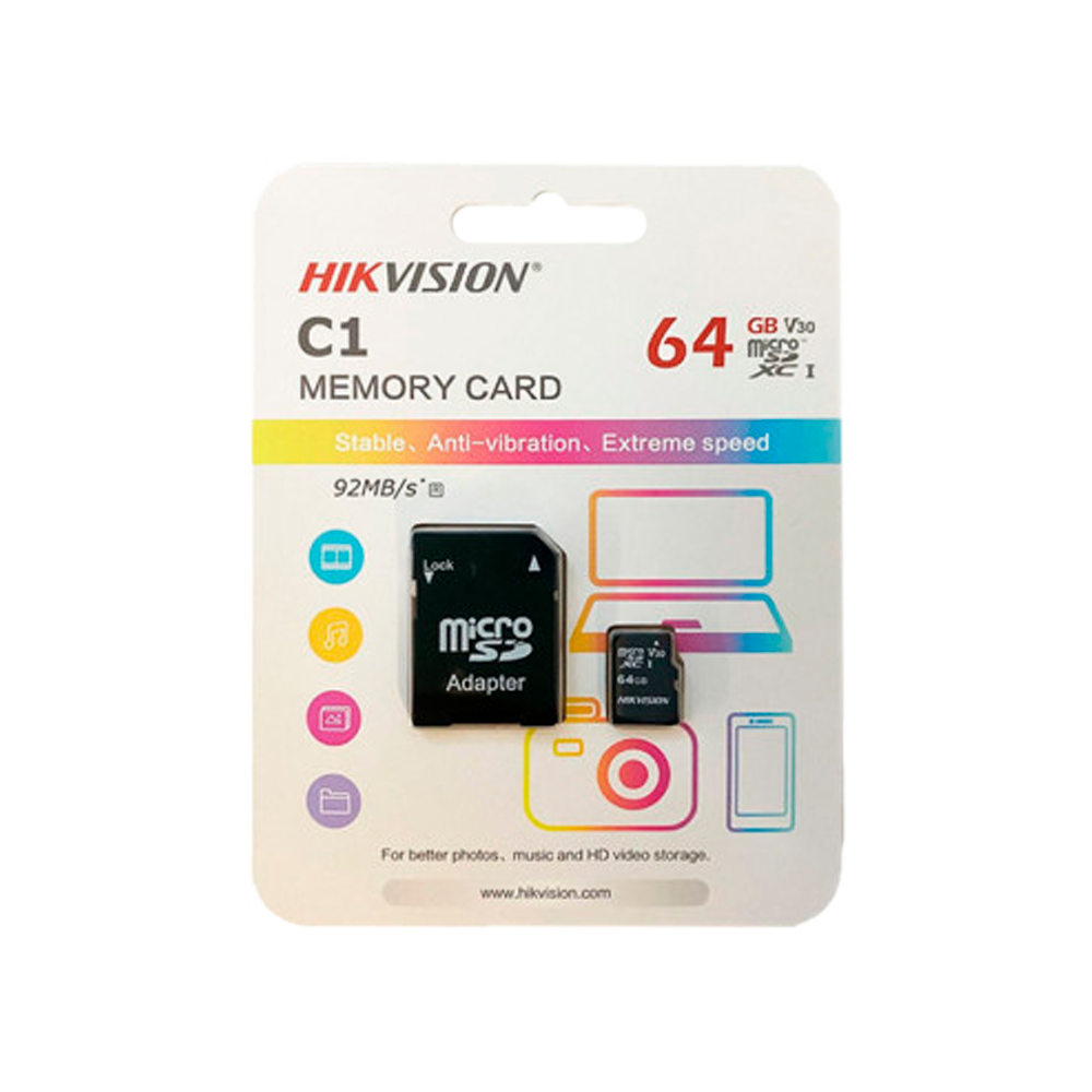 Tarjeta de memoria con adaptador Hikvision – Capacidad 64 GB – Clase 10 | Velocidad escritura 20 MB/s – Hasta 300 ciclos de escritura – Formato FAT32 – Ideal para móviles, tablets, etc
