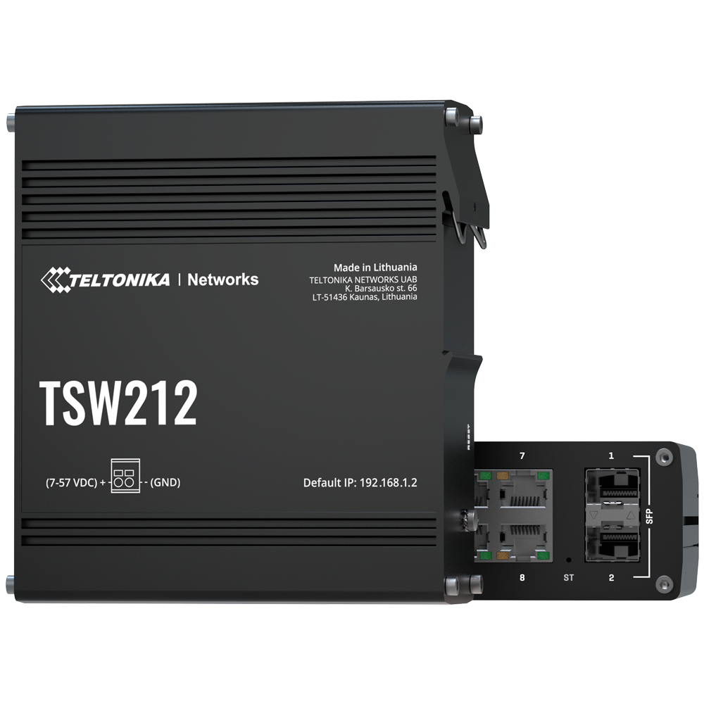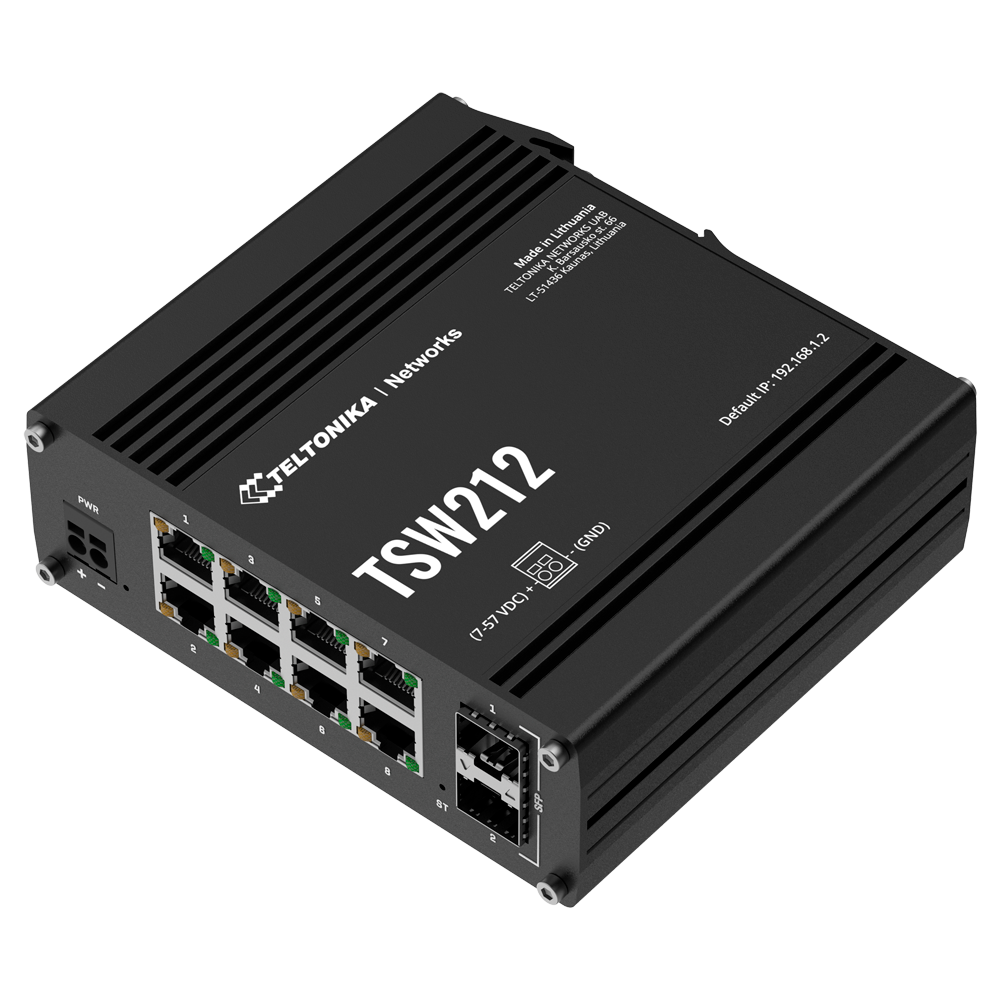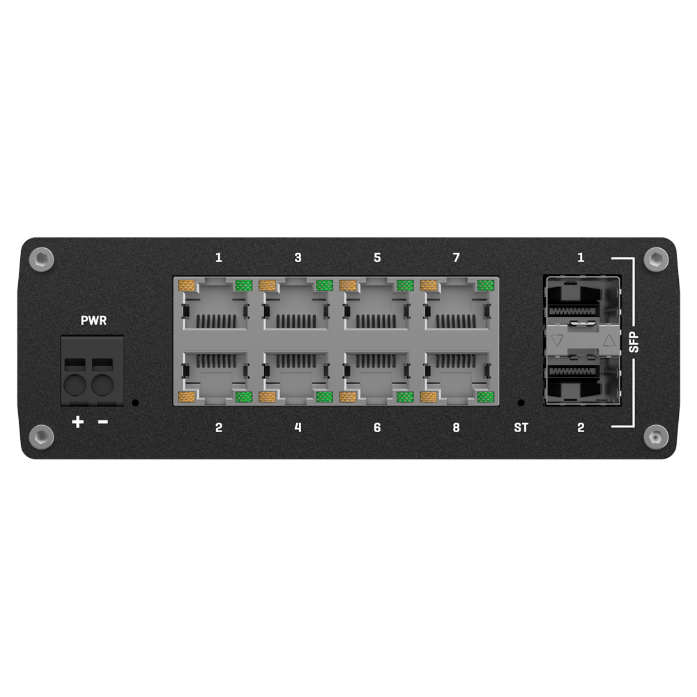 Teltonika Switch Gestionable Industrial – 8 puertos Ethernet RJ45 Gigabit +2 SFP Gigabit – VLAN/Loop Prevention/STP/RSTP/Port Mirroring – Rugerizado Carcasa Aluminio – Montaje en carril DIN
