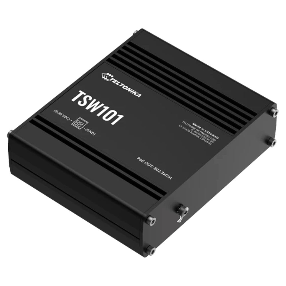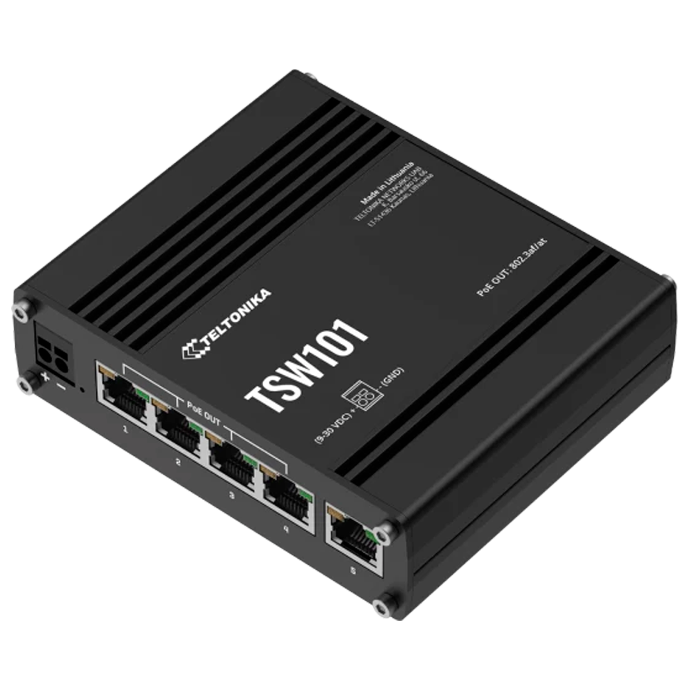 Teltonika Switch PoE No gestionable Industrial – 5 puertos Ethernet RJ45 Gigabit – 4 Puertos Ethernet PoE+ 802.3af/at – Hasta 30W por Puerto PoE – Hasta 60W de Potencia PoE total – Rugerizado Carcasa Aluminio