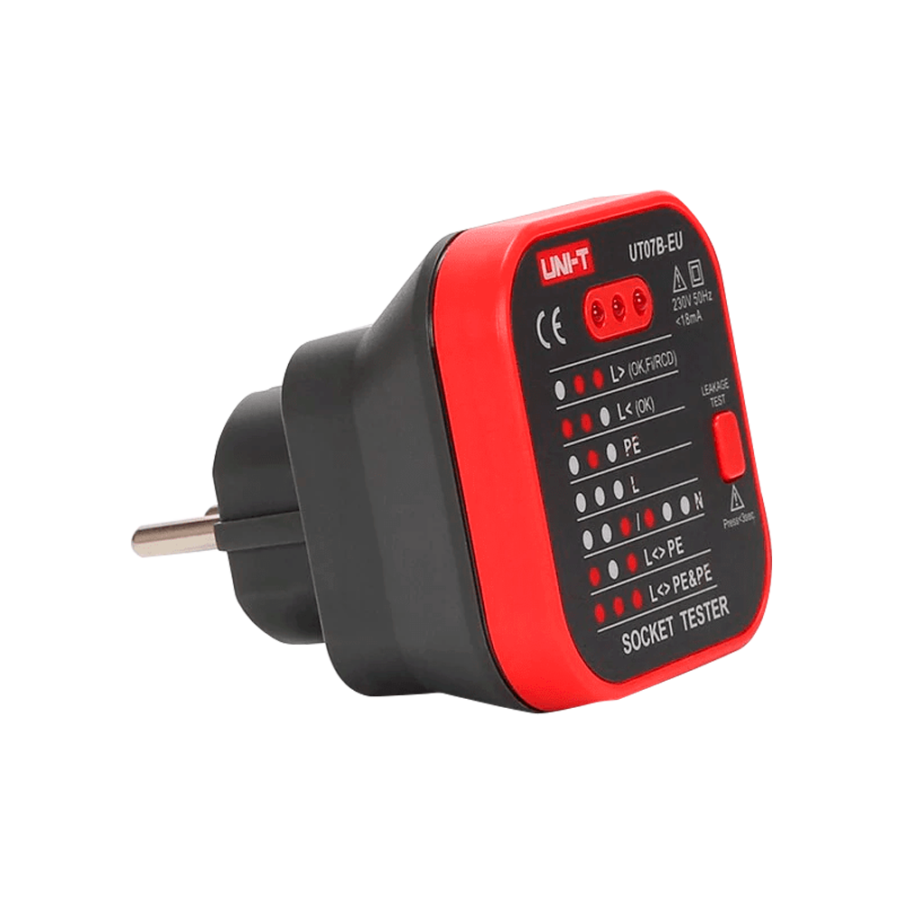 Los tester de tomas eléctricas de la serie UT07 pueden verificar los errores de cableado del enchufe. Estas herramientas son ampliamente utilizadas en áreas comerciales y residenciales. Los tester de UT07B también incluyen la función de prueba de fuga para verificar si los interruptores de circuitos funcionan correctamente.
