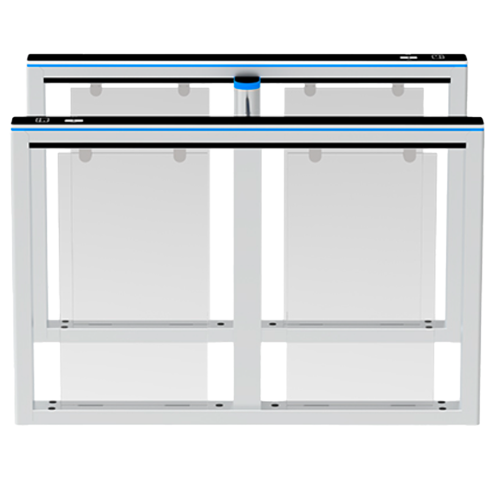 Torno de acceso bidireccional – Portillo con barrera acrílica plegable – Tiempos, alarmas y modos de apertura – Ancho de paso 660 mm | 5.000.000 ciclos – Fabricado en aleación de aluminio – Compatible con sistemas de terceros