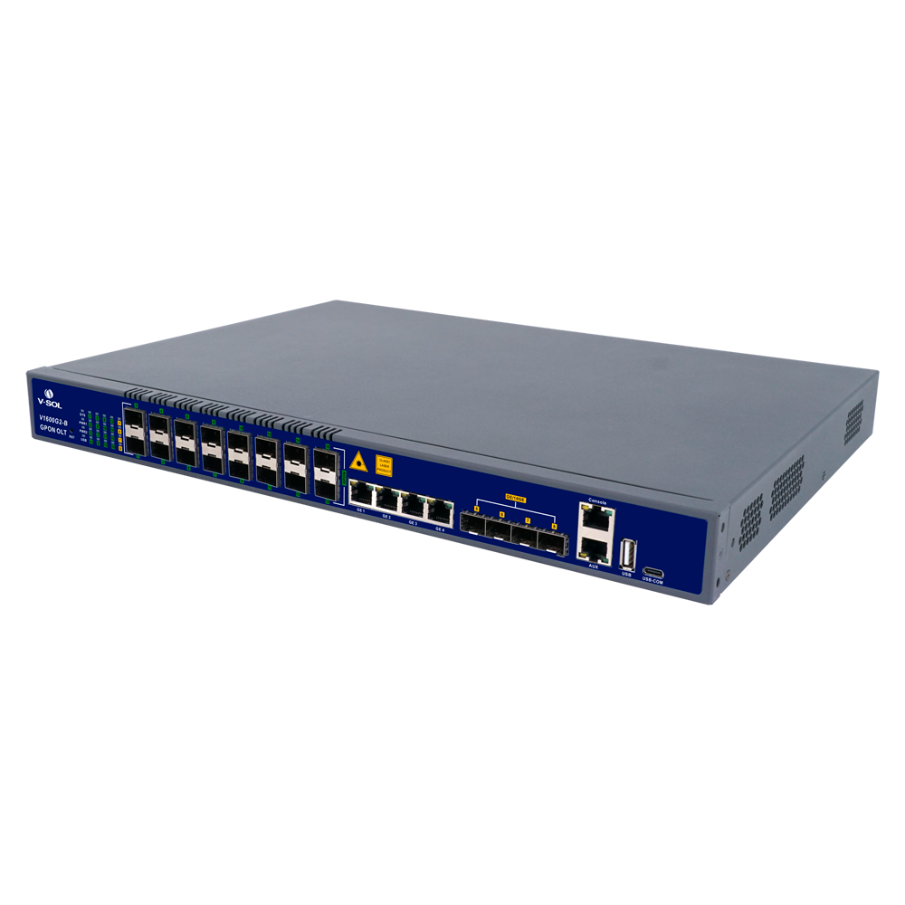 El V1600G2-B es una OLT GPON de capa 3, compacta (1U), pensada para despliegues FTTx en áreas remotas, de baja densidad o entornos empresariales. Cuenta con 16 puertos GPON, soporta distancias de hasta 20 km y ofrece velocidades de 2,5 Gbps de bajada y 1,25 Gbps de subida. Incorpora uplinks 4×GE RJ45 y 4×SFP/SFP+ (hasta 10G), funciones avanzadas de conmutación y enrutamiento (L2/L3, VLAN, QoS, RIP/OSPF, IPv4/IPv6) y gestión completa por Web, CLI y SNMP, siendo una solución eficiente y de bajo consumo para operadores e integradores.