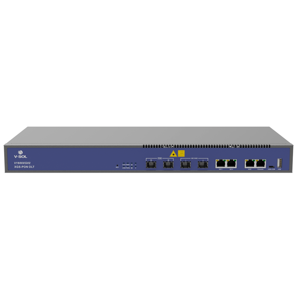 El V1600XG02 es un OLT box de 1U equipado con 2 puertos PON (GPON, XG-PON, XGS-PON opcionales) y 2 puertos ópticos de enlace ascendente 10GE/GE. Con una relación de división máxima de 1:256 (recomendada 1:128) y una velocidad de hasta 10 Gbps, está diseñado para pequeñas empresas, tiendas y arrendamiento de inmuebles, ofreciendo una solución de red de acceso de fibra eficiente y flexible.