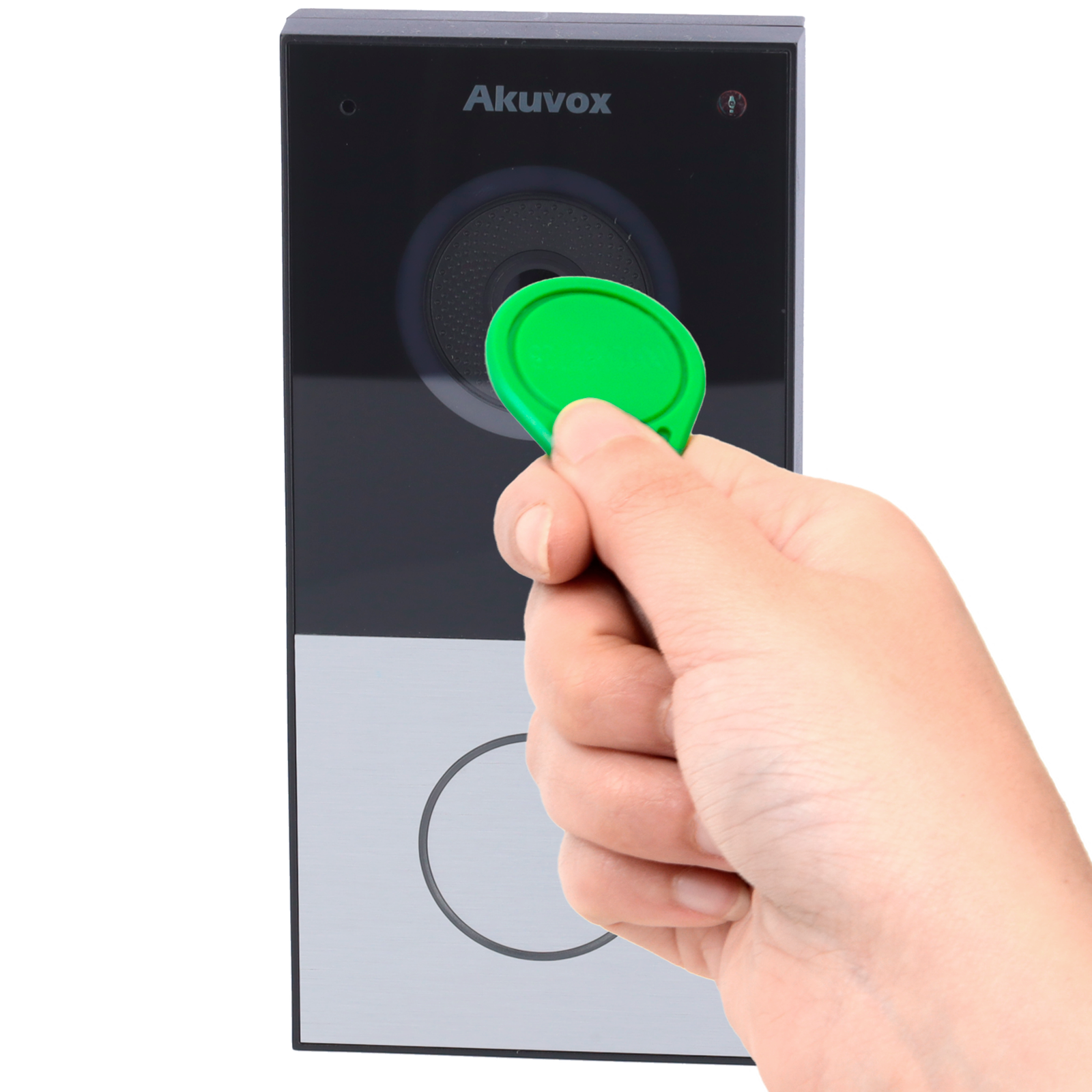 Lector de acceso – Acceso por tarjeta EM/MF y PIN – Indicador LED y acústico – Wiegand 26/34 – Compatible con equipos Akuvox y de terceros – Apto para exterior IP65 | Metal