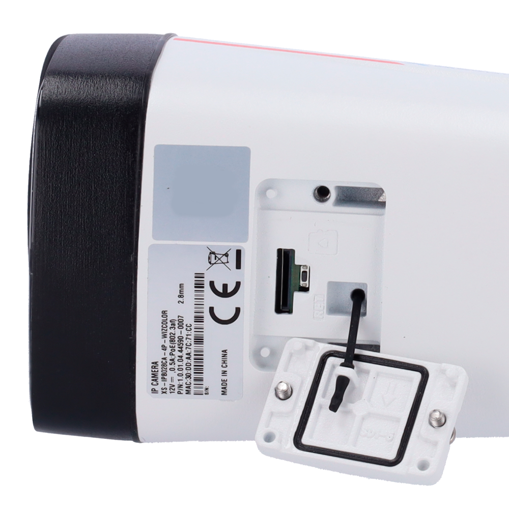X-Security Cámara IP Bullet – 4 Megapíxel (2688×1520) – Lente 2.8mm / DualLight (30m IR+30m Luz blanca) – WDR 120 dB | Disuasión activa con altavoz y luz – WizSense, con clasificación de humano y vehículo – MicroSD 256GB / IP67