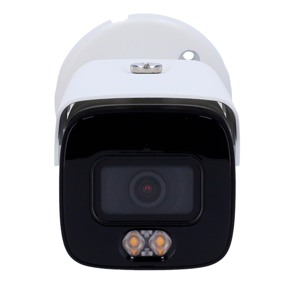 Cámara Bullet IP gama Pro – Resolución 8 Mpx (3840×2160) – Lente 3.6 mm – Dual Light: IR (60 m) + luz blanca (50 m) – Micrófono integrado | Audio | Alarmas | MicroSD – Funciones Inteligentes: IVS, SMD | IP67