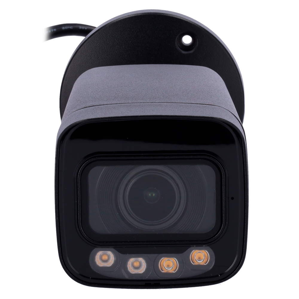 Cámara Bullet IP 4 Megapixel BLACK – 1/3” Progressive Scan CMOS – Compresión H.265+/H.265/H.264+/H.264 – Lente 2.8 mm / LEDs Alcance 30 m – WDR | Micrófono integrado – Funciones Inteligentes