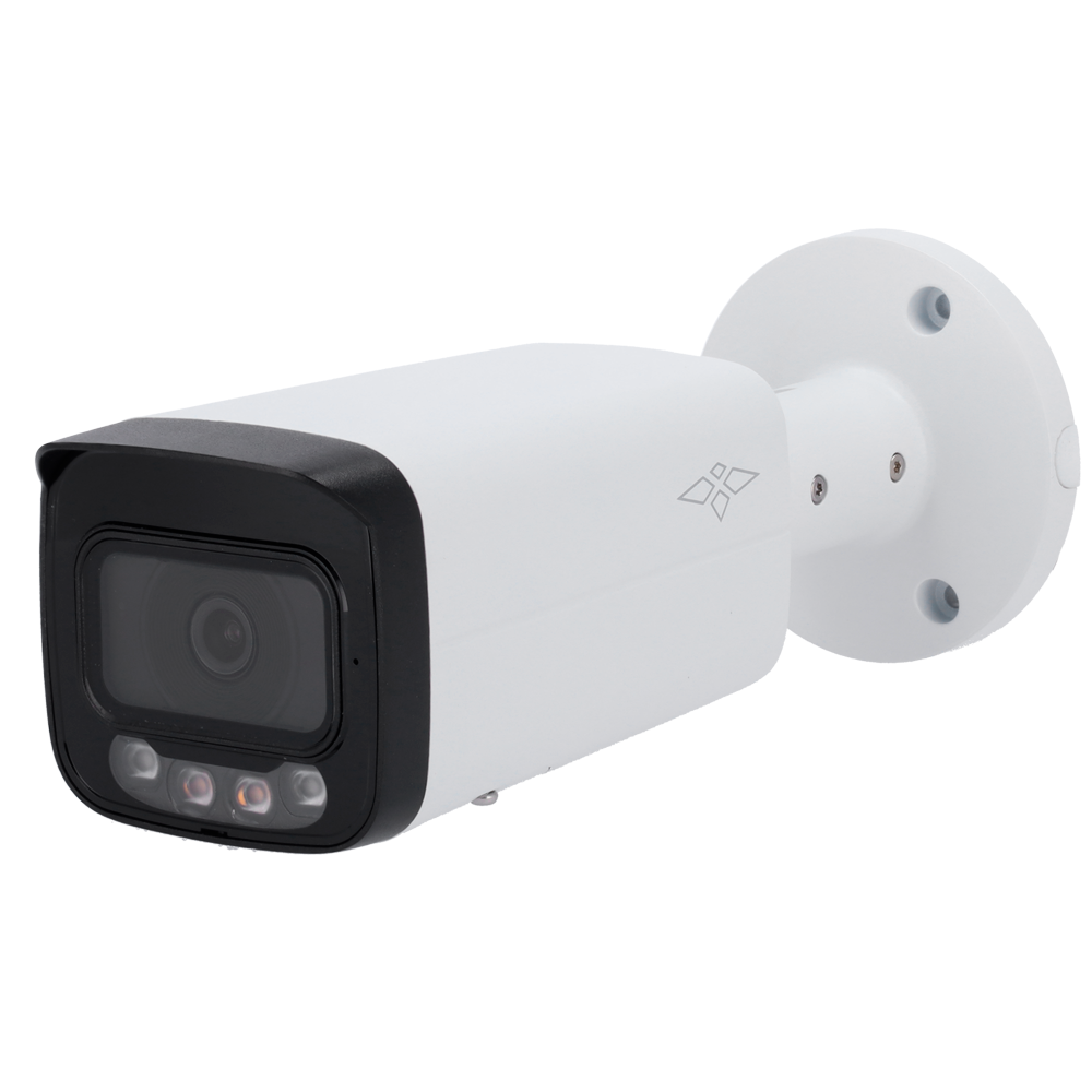 Cámara Bullet IP gama Pro – Resolución 8 Mpx (3840×2160) – Lente 3.6 mm – Dual Light: IR (60 m) + luz blanca (50 m) – Micrófono integrado | Audio | Alarmas | MicroSD – Funciones Inteligentes: IVS, SMD | IP67
