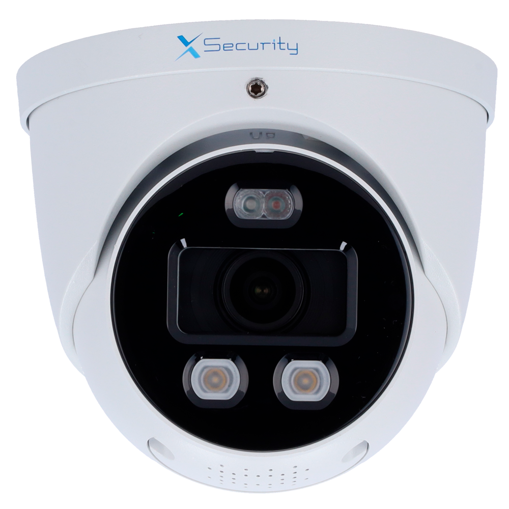 X-Security Cámara IP Turret Wizcolor – 4 Megapíxel (2688×1520) | Sensor 1/1.8" CMOS – Lente 2.8mm | IR+Luz Blanca 30m – WDR 120dB | Micrófono integrado – WizSense, con clasificación de humano y vehículo – MicroSD 512GB | IP67