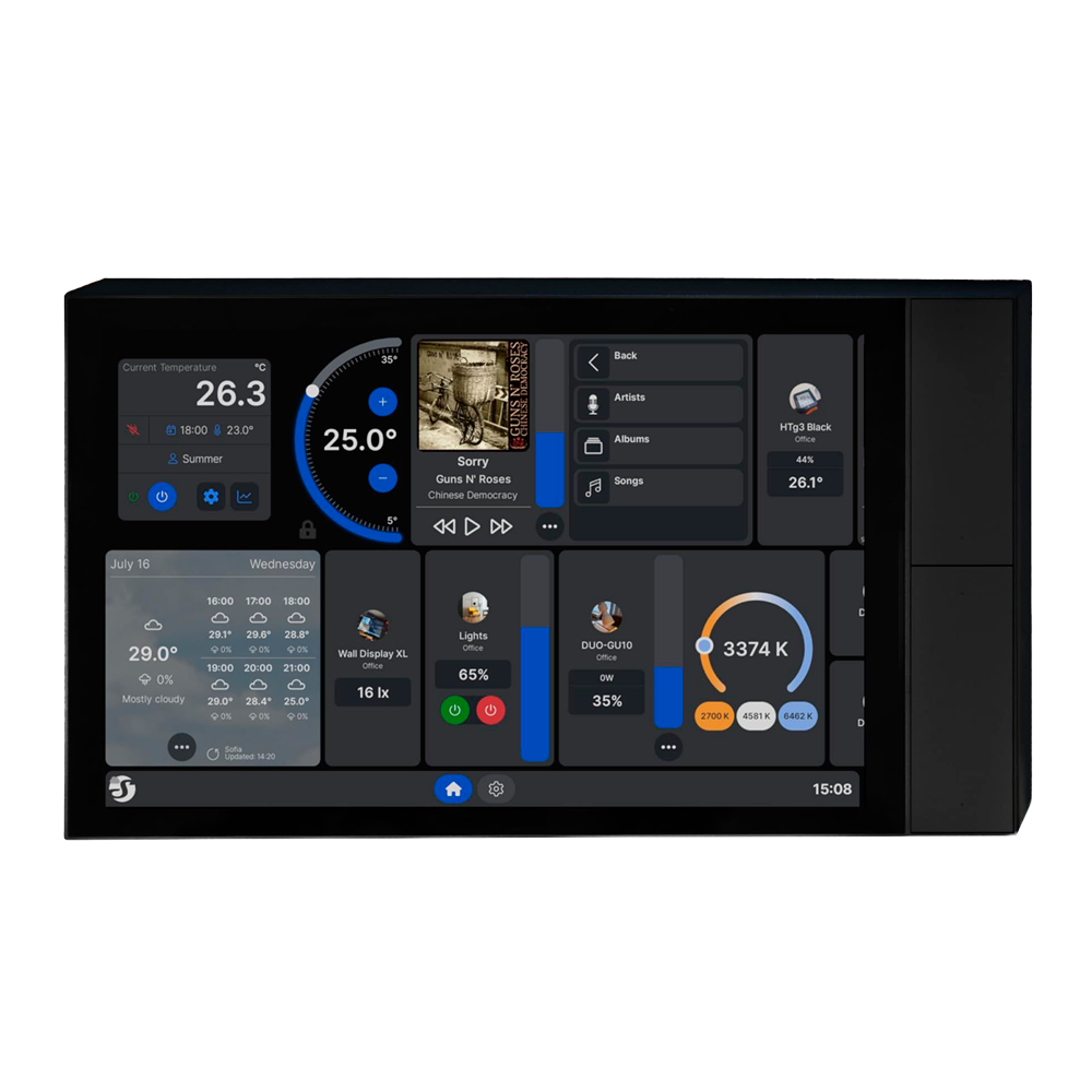 Shelly Wall Display XL Black – Wi-Fi 6 Dual Band / Bluetooth 5.4 – Sensor de Iluminacion – 4 botones fisicos – Gestiona el consumo – Compatible con Alexa y Google