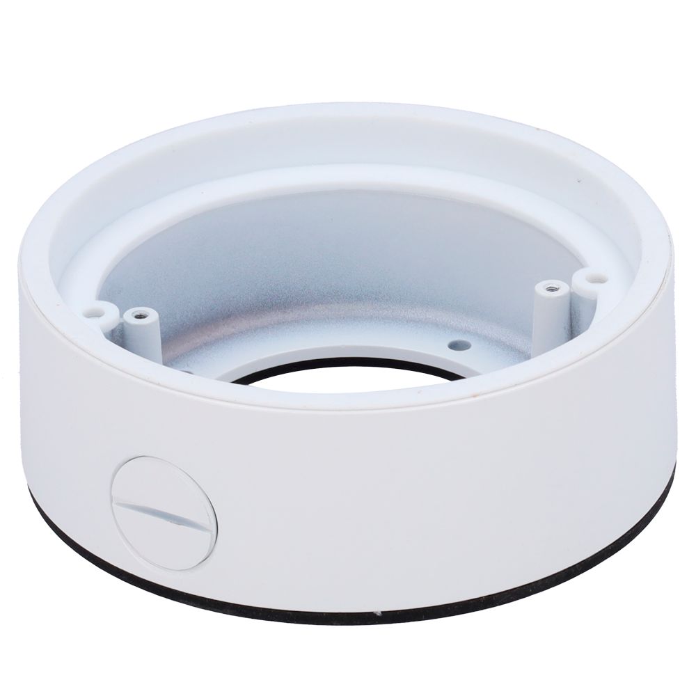 Soporte montaje en superficie – Para cámaras domo compacto – Apto para uso exterior – Instalación en techo o pared – Color blanco (RAL9003) – Pasador de cables